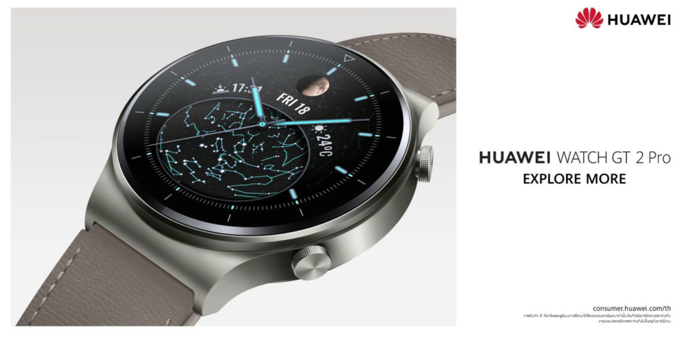 บริษัท หัวเว่ย คอนซูมเมอร์ บิสสิเนส กรุ๊ป (ประเทศไทย) ประกาศวางจำหน่ายสมาร์ทวอทช์ระดับเรือธงส่งท้ายปี HUAWEI WATCH GT 2 PRO สมาร์ทวอทช์ดีไซน์หรู ที่ได้รับการอัปเกรดต่อยอดความสำเร็จจากสมาร์ทวอทช์ HUAWEI WATCH GT 2 ที่ได้สร้างความประทับใจให้แก่ผู้ใช้ทั่วโลกมาก่อนหน้านี้ โดย HUAWEI WATCH GT 2 PRO โดดเด่นด้วยความพิถีพิถันในการคัดสรรวัสดุที่ใช้ ตัวเรือนไทเทเนียมและหน้าปัดแซฟไฟร์ที่ให้ความรู้สึกพรีเมียมและทนทานต่อการใช้งาน สามารถใช้ได้ในทุกกิจกรรมและวาระโอกาส มาพร้อมฟังก์ชันจัดเต็มตอบโจทย์ทุกไลฟ์สไตล์ สะท้อนความเรียบเท่ในสี Nebula Gray สายหนังสีเทาหม่นที่ดูมินิมัล ขณะเดียวกันก็เหมาะสำหรับงานทางการ และเมื่อต้องการลุคสปอร์ตก็ทำได้ง่ายๆ เพียงเปลี่ยนเป็นสายซิลิโคนสีดำที่มีให้ในกล่อง ในราคา 9,990 บาท พร้อมโปรโมชั่นพิเศษในช่วงเปิดตัว สำหรับผู้ที่ซื้อสมาร์ทวอทช์ HUAWEI WATCH GT 2 PRO ระหว่างวันที่ 6 – 15 พฤศจิกายน 2563 รับฟรีทันที HUAWEI SuperCharge Wireless Charger มูลค่า 1,690 บาท