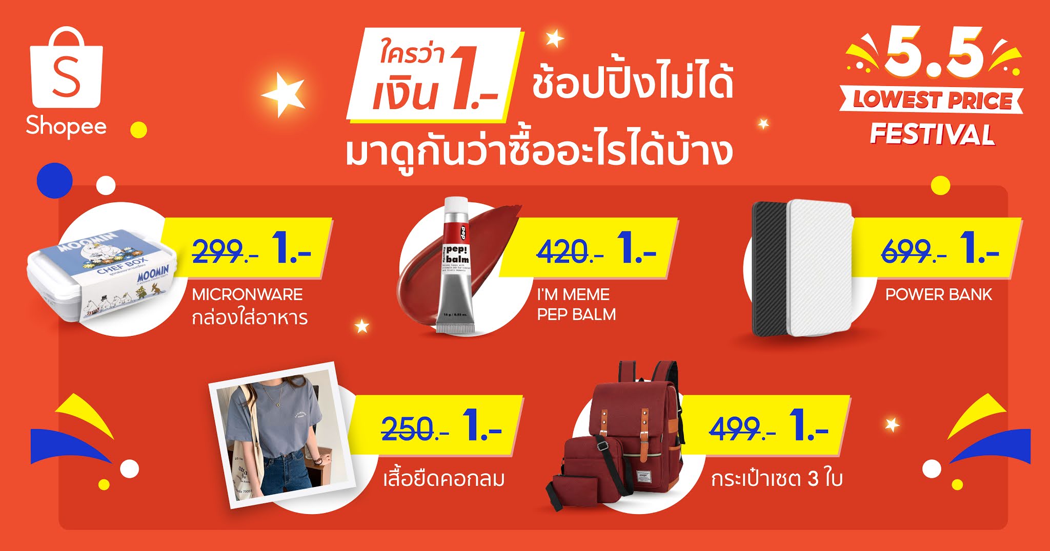 คุ้มกว่านี้ไม่มีอีกแล้วกับสินค้าราคาเริ่มต้นเพียง 1 บาทบนช้อปปี้เท่านั้น
