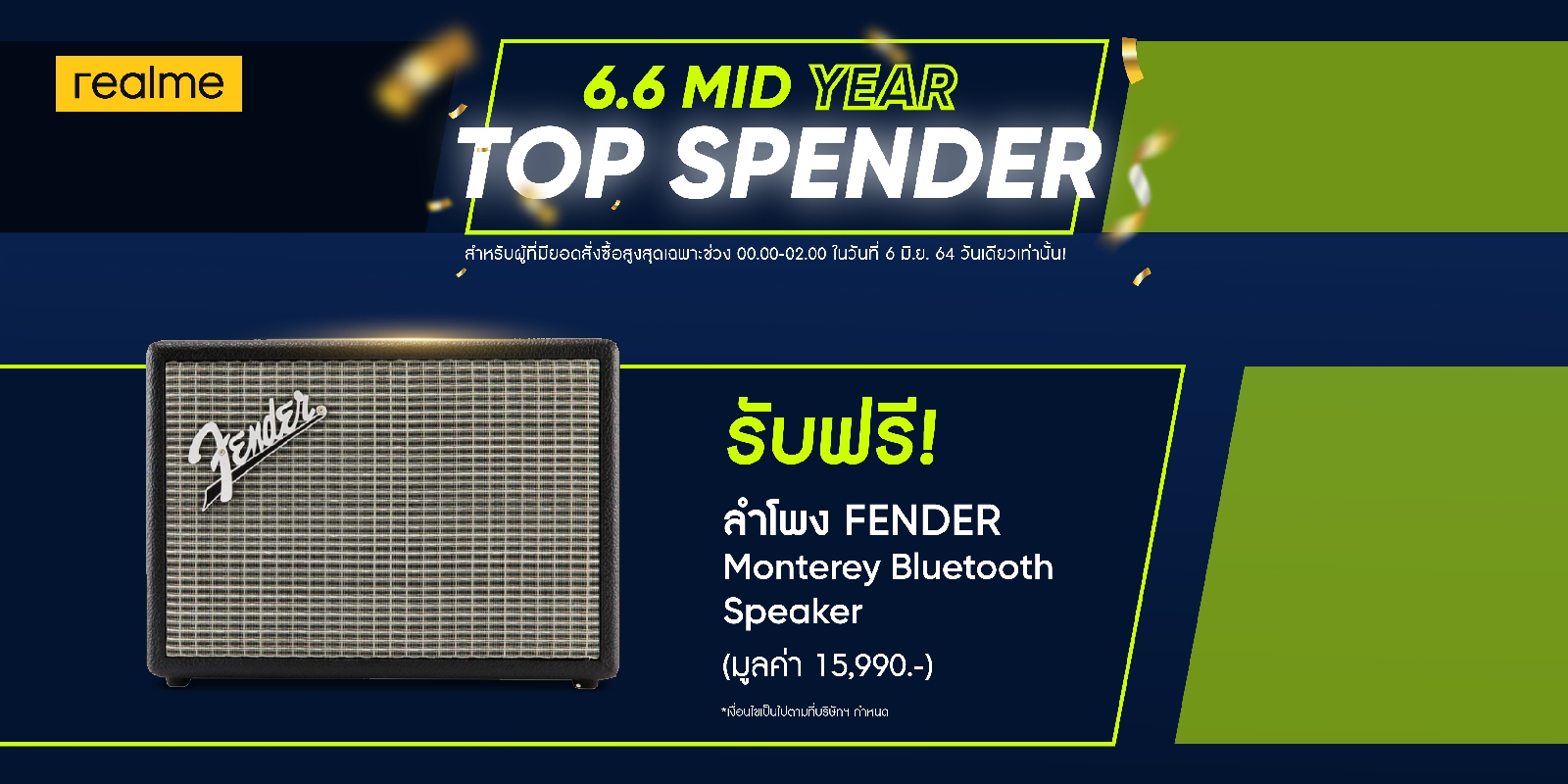 · สำหรับลูกค้าที่มียอดคำสั่งซื้อสูงสุด ภายในวันที่ 6 มิถุนายนนี้ เฉพาะเวลา 00.00 - 02.00 น. เท่านั้น รับฟรีทันที ! ลำโพง FENDER ลำโพง Monterey Bluetooth Speaker มูลค่า 15,990 บาท