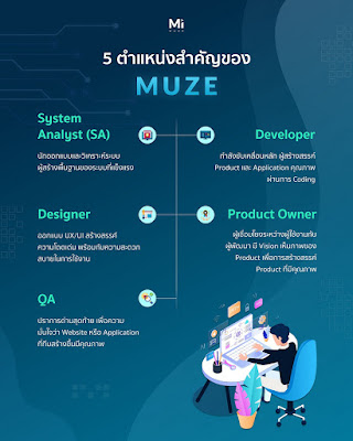 นอกจาก 5 ตำแหน่งนี้ Muze ยังมีทีมงานอีกหลายตำแหน่งซึ่งล้วนมีความสำคัญในการขับเคลื่อนให้ Muze เป็นองค์กรเทคฯที่มีคุณภาพและแข็งแกร่งยิ่งขึ้นในการออกแบบและพัฒนาโปรดักส์ด้านดิจิทัลที่สามารถตอบสนองความต้องการและความคาดหวังชองลูกค้าได้อย่างเข้าใจและตรงจุด ซึ่ง Muze ให้ความสำคัญกับการพัฒนาและเรียนรู้ของคนในองค์กรเพื่อให้ทุกคนสามารถเติบโตในโลกที่มีการแข่งขันได้อย่างมีคุณภาพ และ Muze ยังคงเปิดรับคนรุ่นใหม่ที่มีความสามารถ พร้อมพัฒนา สร้างทีมและเดินหน้าสู่โลกดิจิทัลที่เต็มไปด้วยความท้าทายไปด้วยกัน