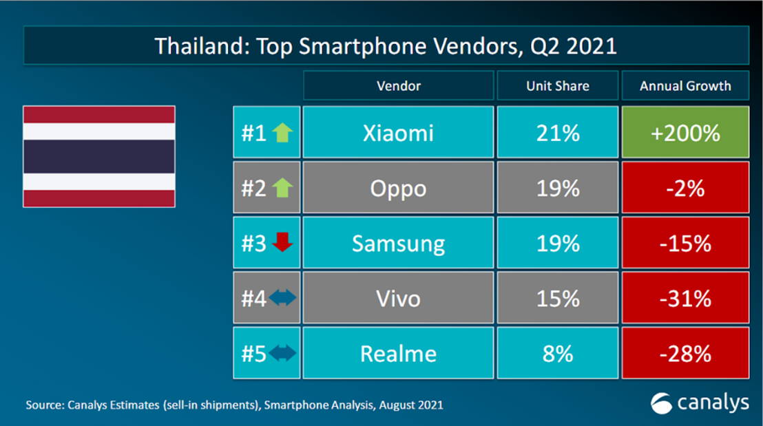 จากรายงานของบริษัทวิจัย Canalys พบว่า เสียวหมี่ ประเทศไทย ขึ้นแท่นเป็นแบรนด์สมาร์ทโฟนที่