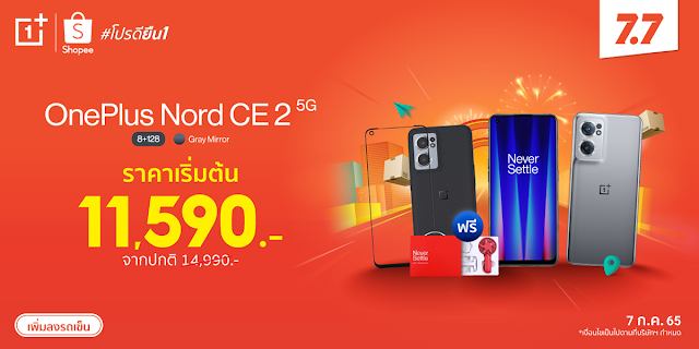 ชวนช้อปต้อนรับเดือนกรกฎาคมนี้ กับ OnePlus 7.7 Super Sale สมาร์ทโฟนและไอเท็มฮอตลดสูงสุด 50% พร้อมแจกคูปองลดเพิ่มอีกสูงสุด 500 บาท OnePlus Nord CE 2 5G ลดเหลือเพียง 11,590 บาท พร้อมส่งฟรีขั้นต่ำ 3,999 บาท เฉพาะ วันที่ 7 กรกฎาคม 65 วันเดียวเท่านั้น! ร้าน OnePlus official store บน Shopee