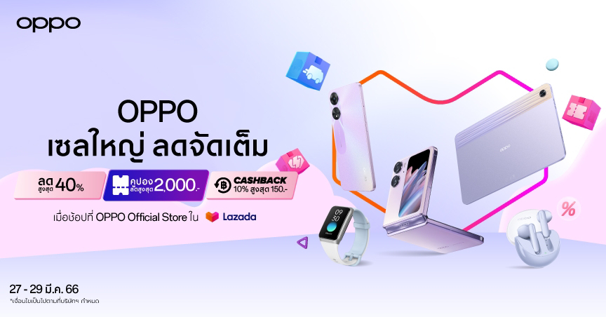 | ตั้งแต่วันที่ 27 - 29 มีนาคมนี้ ที่ OPPO Official Store บน Lazada |