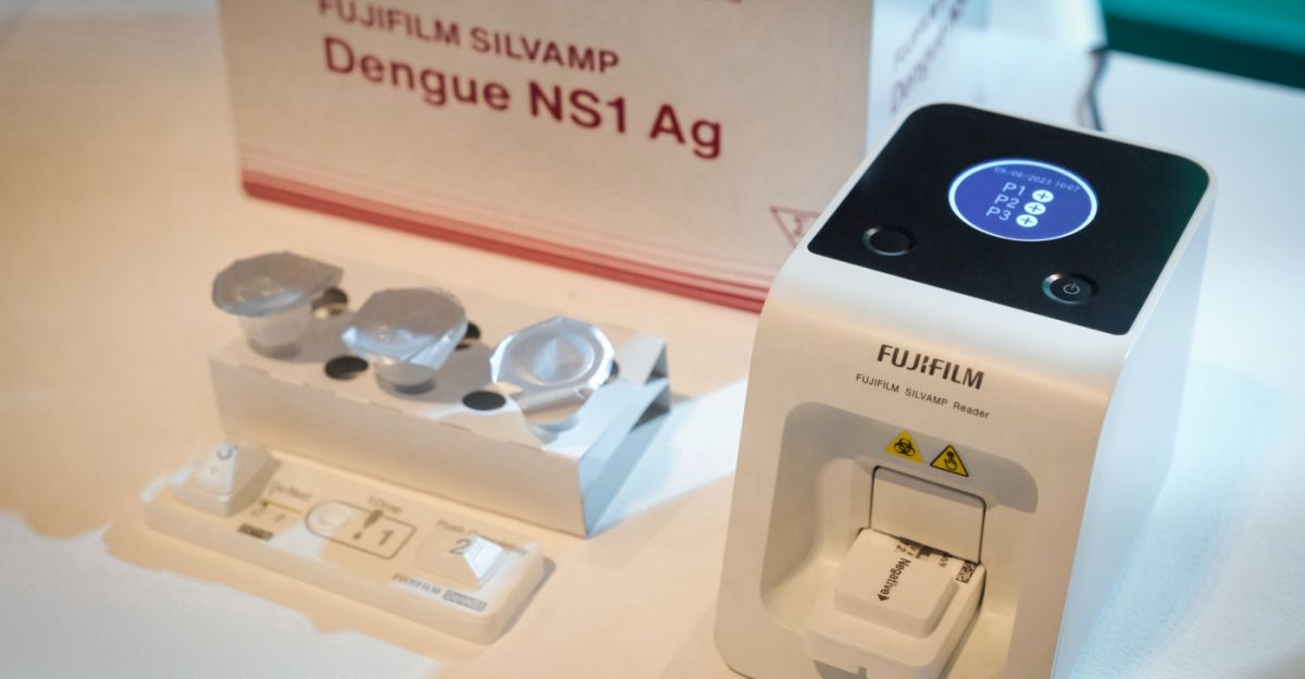 สำหรับนวัตกรรม Rapid Test ชุดตรวจที่มีความไวสูงที่ฟูจิฟิล์มได้นำมาโชว์ศักยภาพในงาน “ASEAN DENGUE DAY 2023” ถือเป็นนวัตกรรมที่ช่วยเพิ่มประสิทธิภาพการวินิจฉัยเชื้อไข้เลือดออก ที่มาพร้อมเทคโนโลยี Silver Amplification นำเสนอโซลูชันชุดทดสอบแบบ Point of Care (POC) Antigen Test ใช้งานสะดวกทุกที่ทุกเวลา ช่วยวินิจฉัยได้ตั้งแต่ในระยะเริ่มต้น ด้วยวิธีตรวจที่สะดวก ง่าย สามารถทำได้ทุกที่ทุกเวลา โดยไม่ต้องใช้ความเชี่ยวชาญเฉพาะทางหรืออาศัยเครื่องมือพิเศษอื่นๆ สามารถรู้ผลภายใน 15-20 นาที จึงช่วยให้แพทย์ตรวจพบผู้ป่วยไข้เลือดออกได้เร็วและแม่นยำมากขึ้นได้ สอดคล้องกับเป้าหมายในการลดการป่วยและการตายจากโรคไข้เลือดออกให้แก่ผู้คนในวงกว้าง ช่วยขับเคลื่อนการตรวจพบตั้งแต่ระยะเริ่มต้น การมอบผลการวินิจฉัยที่ถูกต้อง ลดค่าใช้จ่ายในการตรวจด้วยชุดอุปกรณ์ตรวจที่ใช้ง่ายสำหรับทุกคน