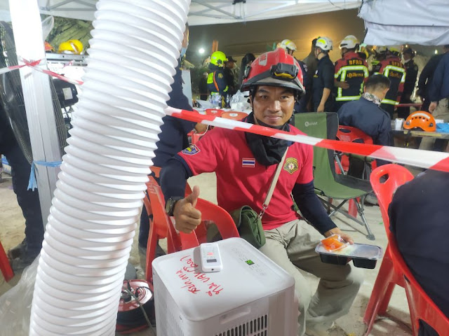 ขณะปฏิบัติงานกู้ภัยหลังแผ่นดินไหว ณ พื้นที่อาคารสำนักงานการตรวจเงินแผ่นดิน (สตง.) แห่งใหม่ เขตจตุจักร